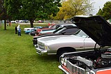 A row of cars at Saturday’s Othello Cinco de Mayo celebration line a section of …