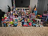 A mountain of toy donations in Jeannie Austin’s living room as she prepared for the …