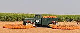 A truck with the Palmer’s Adventure Farm logo seen overflowing with pumpkins. The farm has …
