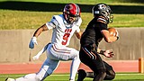 The Wildcats’ Javonte Walker (9) closes in on a UTPB ball carrier on Saturday. The …