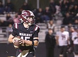 Keaton Zirker (15) breaks out of the pocket as he looks downfield for an open …