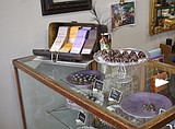 Mark Rowley of Fresh Picks, WA, displays chocolate covered cherries at the spring farmers market …