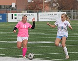 Ali Harshman (14) races a West Valley player to the ball on Saturday. The Mavs …