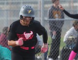 Hayden Morris (2) takes off after hitting a home run against Eastmont in the 4A …