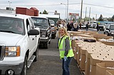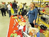 Casey Colee, an Ace Hardware associate speaks to people at the Taste of Home cooking …