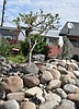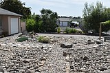 Teresa Fields sits in front of the rock yard she created over the course of …