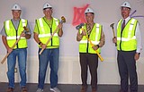 One of the yellow cars built by Hard Rock Farm Demo Crew driving through a …