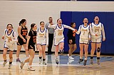 The Devils players run across the court celebrating their victory over Entiat in the district …
