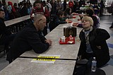 Brandon Burns of the Moses Lake Fire Department talks with a Groff Elementary breakfast buddy …