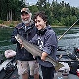 Marc Bush, owner of Twisted Waters Guide Service, left, and fishing buddy Dawson Beaver, right, …