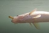 A walleye on the hook fights against the fisherman reeling it in. The quality of …