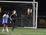 Mavs goalkeeper Emma Thompson kicks the ball toward her teammates in the midfield during Tuesday’s …