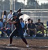 Samantha Kling, a senior with the Mavs, prepares to make a hit at a pitch …