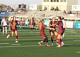 Kamery Char (16) celebrates with her teammates after scoring the first goal of the game …