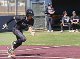 Huskies Jordan Montemayor running for first base after hitting a line drive in the Columbia …
