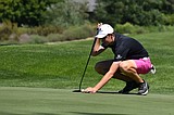 A golfer lines up a shot on the ninth green at the Moses Lake Golf …