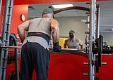 Mike Rapp looks at his reflection as his lifts weights at the Snap Fitness gym …