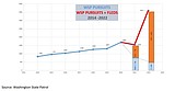 This graph shows Washington State Patrol pursuits from 2014 to 2022, with a breakdown in …