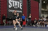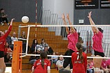 Ephrata senior Addison Mills, left in pink, and junior Addyson Hines, right in pink, leap …