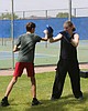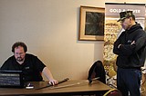Alex Cuevas, of Quincy, waits to learn more about his sword as buyer Richard Surmeyer, …