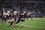 Royal senior running back Kaleb Hernandez bursts through to the end zone on a 25-yard …