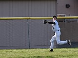 Bronson Scroggins going for the catch in the outfield in a previous game this season. …
