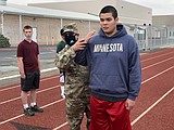 Air Force Senior Master Sgt. Will Britt uses MLHS senior Quinton Manning to demonstrate a …