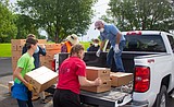 Youth volunteers help load a volunteer delivery truck Saturday with Christmas baskets – or boxes …