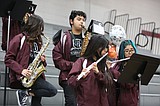 Members of the Wahluke High School pep band play during a Jan. 14 basketball game. …