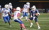 Running back Brodie Maharjan runs with the ball during the third quarter against Oroville on …