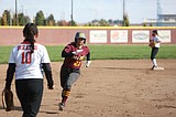 Moses Lake junior Kendall Reffett rounds third base during Moses Lake’s 10-0 win over Hermiston …