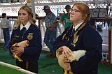Paige Ball, left, and Jeslan Valdez demonstrate on stuffed birds how they would hold their …