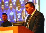 A Big Bend Community College graduate walks back to his seat, diploma in hand, Friday …