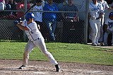 Jonny Purcell makes a run to first base after collecting several hits in game one.