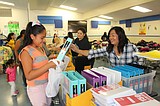 Cindy (left) and Elidia Magana work on a welcome back bulletin board at Othello High …