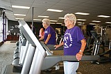 Twin sisters Vere (foreground) and Velma hit the Anytime Fitness treadmill. The sisters, 91 years …