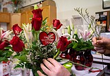 Carol Seal, part-owner of Floral Occasions floral shop in Moses Lake, puts the final touches …