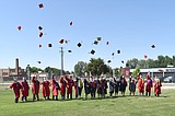 Ephrata High School graduates toss their caps in the air at the end of the …