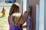 Taylor Hutchinson, 7, in front, and Shyanee Knowles, 10, both of Moses Lake, work to …