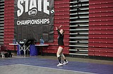 Taylor Freeman prepares to pitch an orange to batter Kailee Harris and catcher Ali Rodriquez …