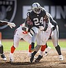 Lind-Ritzville/Sprague senior running back Connor O'Neill hurdles an Adna defender on his way to a …