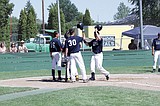Teammates Bryton Redal (16) and Tanner Wiliams (30) greet Josh Snider at home after the …