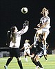 Moses Lake forward Alysha Overland, 9, heads the ball past Davis goalkeeper Isela Cruz for …
