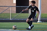Moses Lake's Andres Solorzano preparing to kick the ball into play in a previous game …