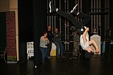 Taylor Street (upside down) practices flips for the Quincy Valley Allied Arts production of “Mary …