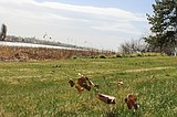 Leaves skating across McCosh Park in Moses Lake from Sunday's high winds.