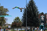 A swimmer flips off the diving board at the Surf ‘n Slide Water Park in …