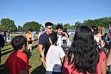 A Digital Learning Center graduate meets up with his family after graduation June 3.