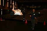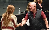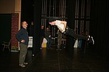 Taylor Street (right) gets a lesson in aerial acrobatics from flying director Mark Kostuch. The …