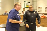 A Moses Lake police officer presents a retirement plaque from the Moses Lake Police Officers …